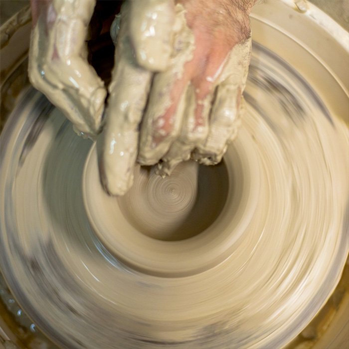 Le stage de tournage se concentre sur l’apprentissage du geste au tour de potier, nous abordons aussi l’ansage et le décor.