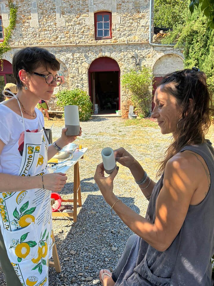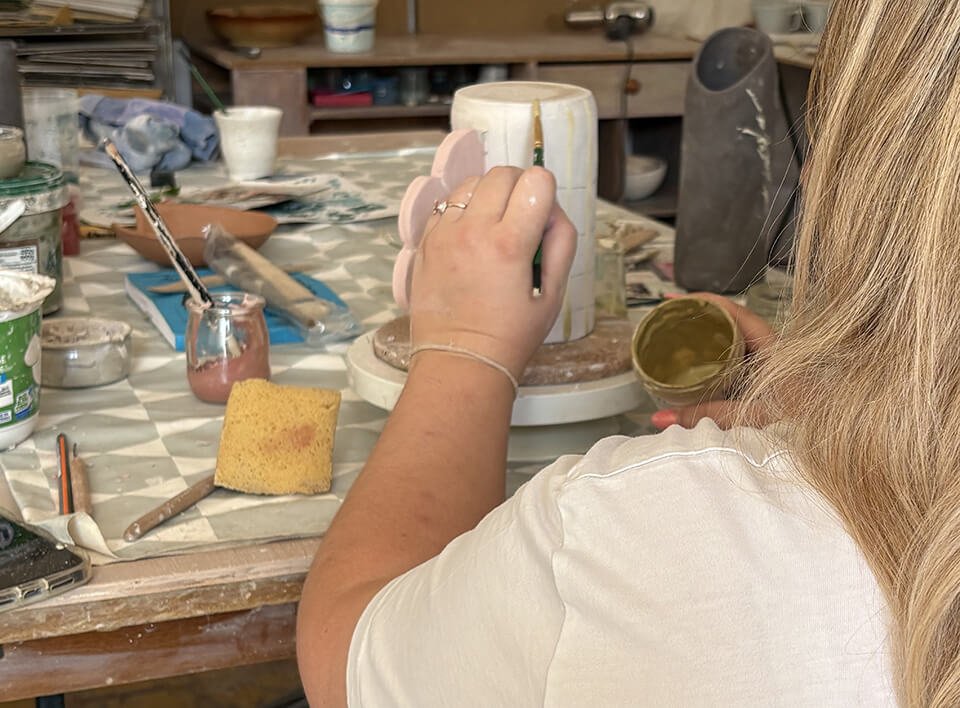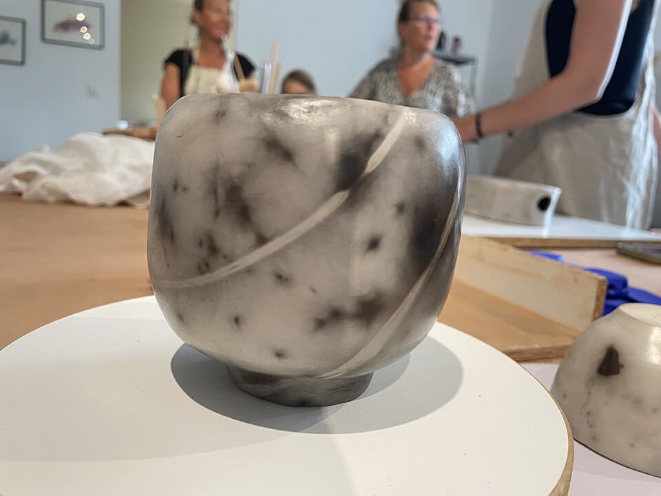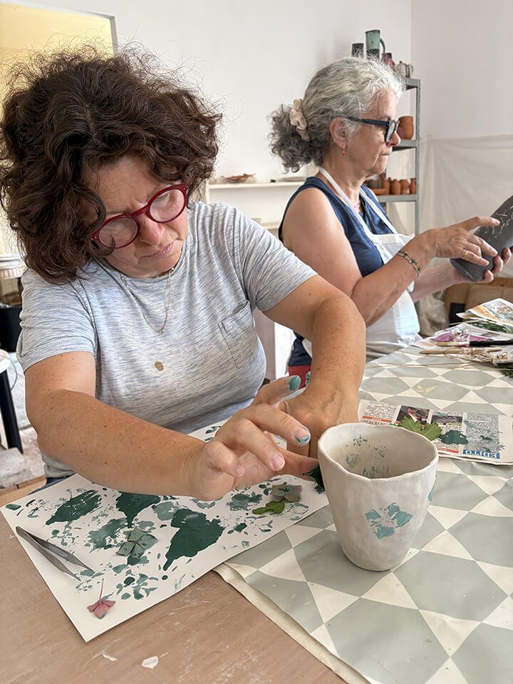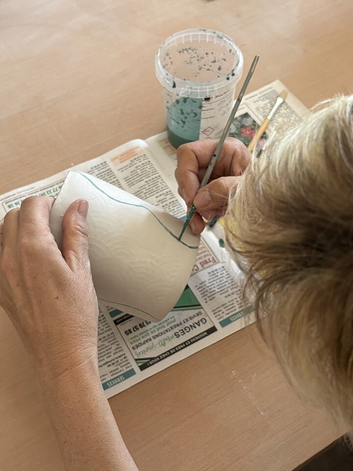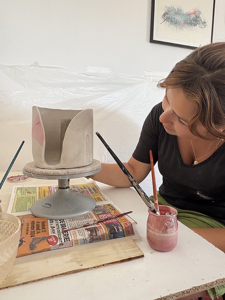 Le stage de céramique alterne temps d’apprentissage, pratique en atelier et moments de respiration, afin de favoriser à la fois l’acquisition technique et l’exploration personnelle.