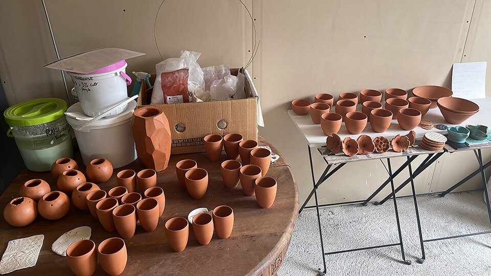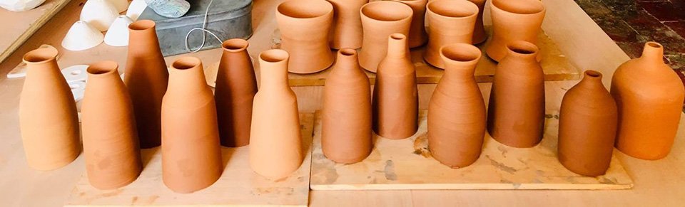 Nous abordons toutes les étapes du travail de l’argile, de la terre crue à la pièce cuite.